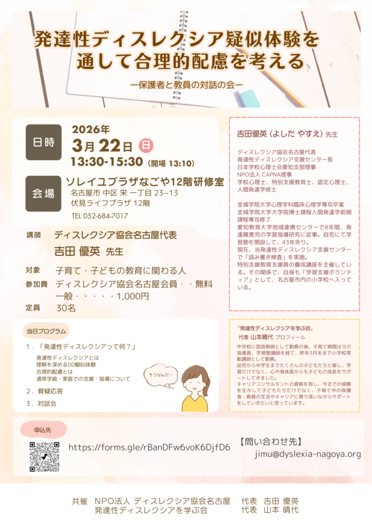 3/22(日) 発達性ディスレクシアを学ぼう!